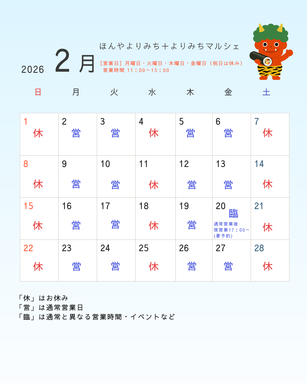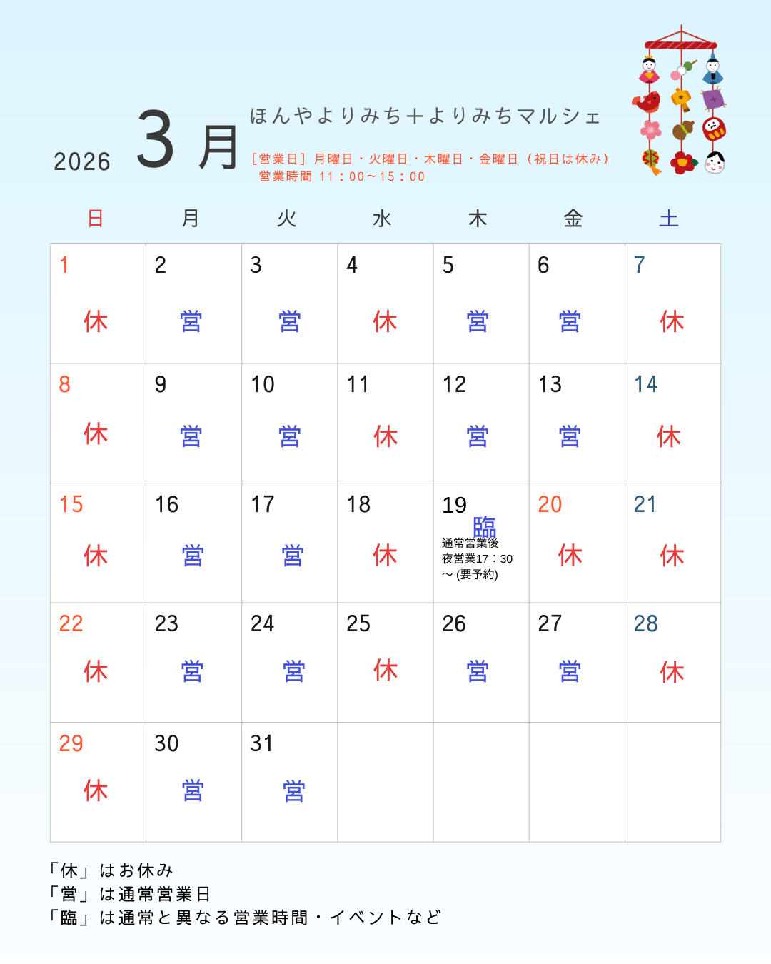 年末年始休業のお知らせ 12/30~1/3は年末年始休業となります 12/28(日)は臨時営業いたします |