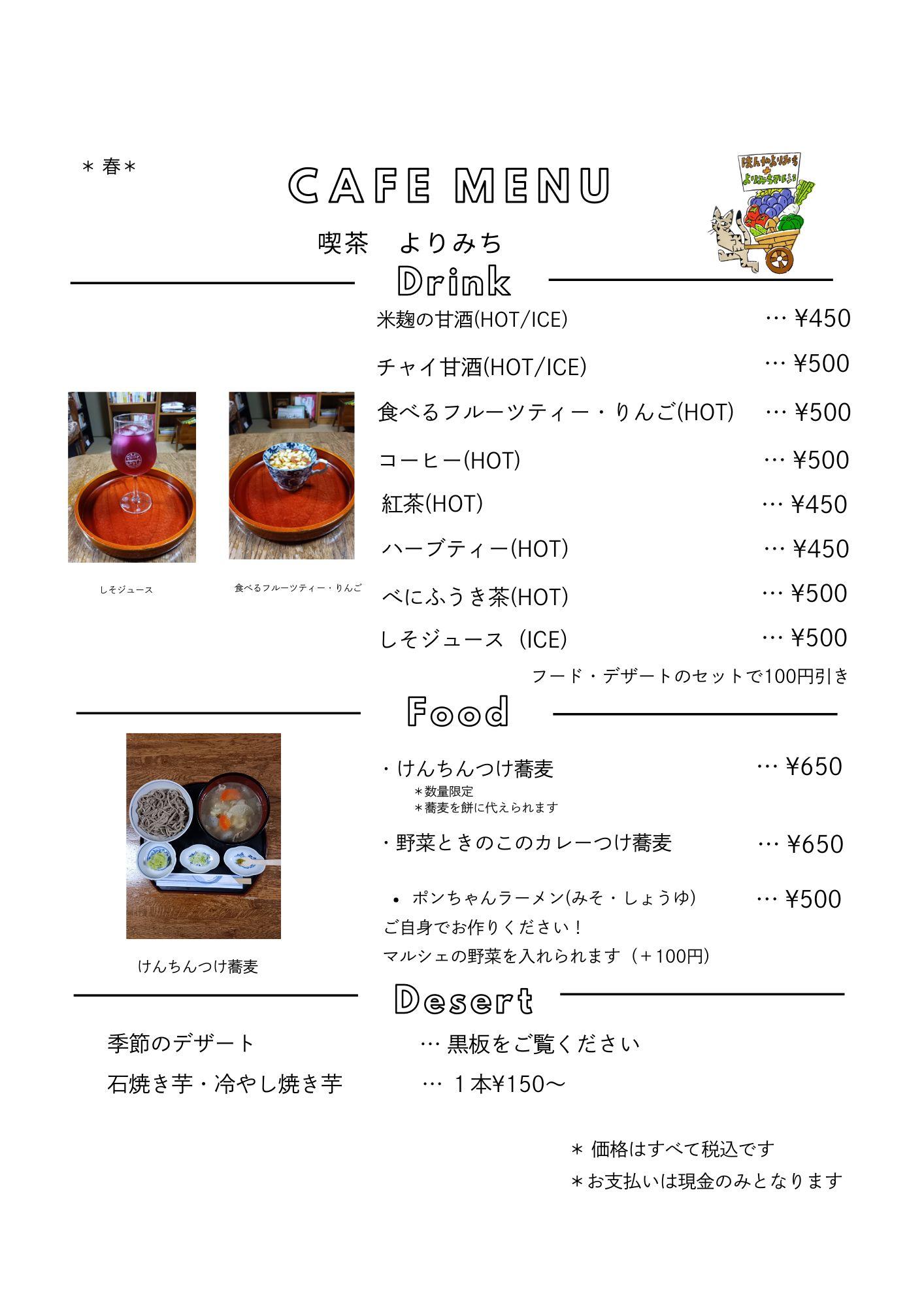 「喫茶よりみち」を始めました! マルシェの果物を使った 自家製ジュース を主に提供します。 |